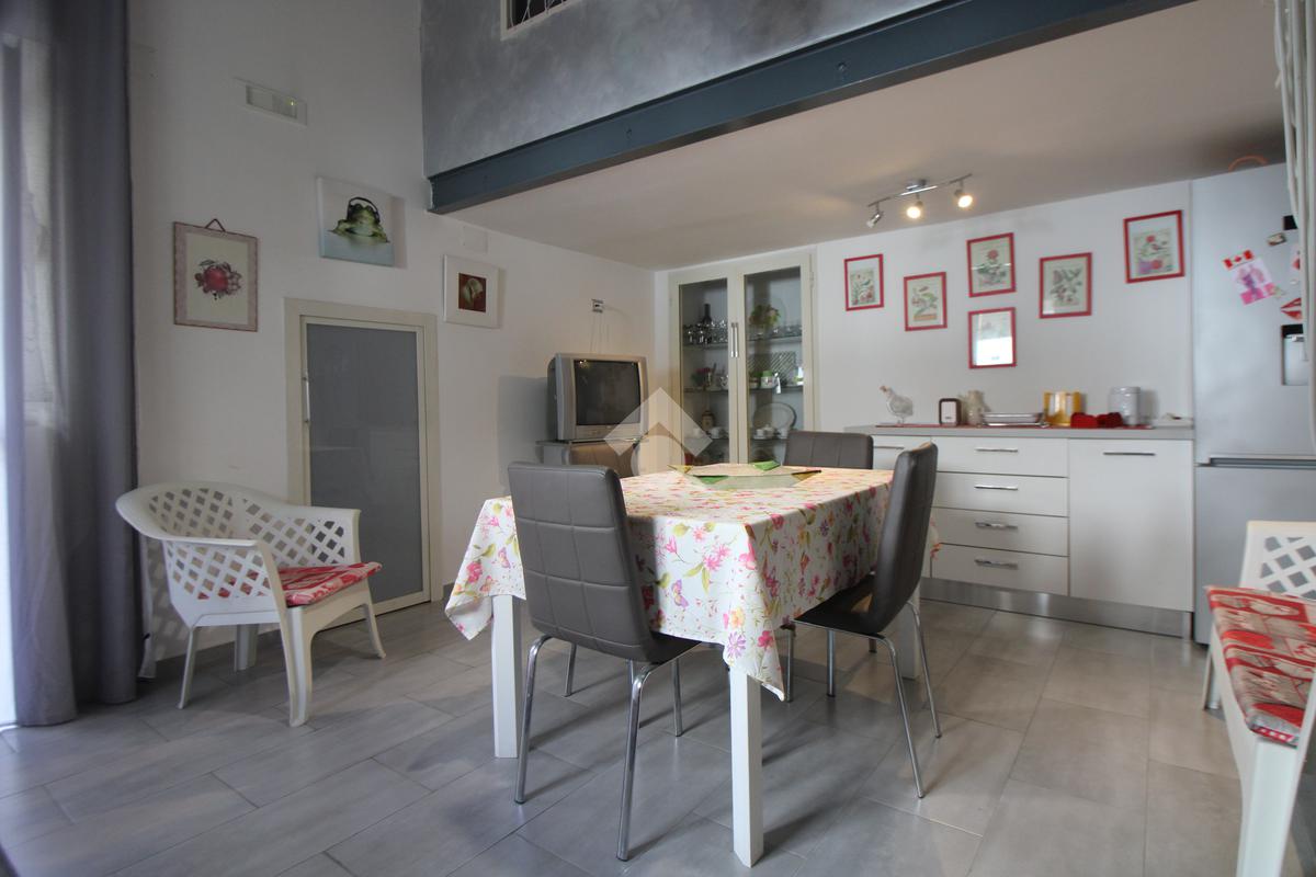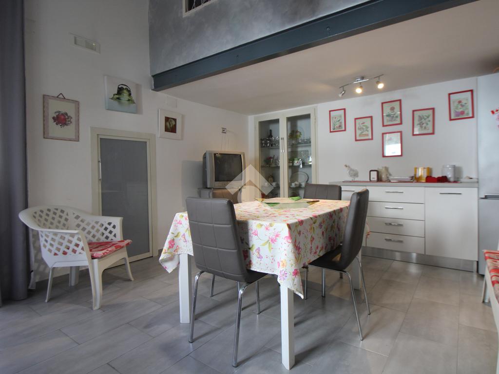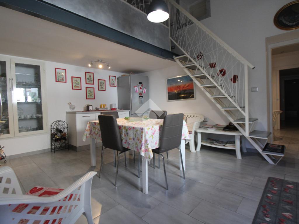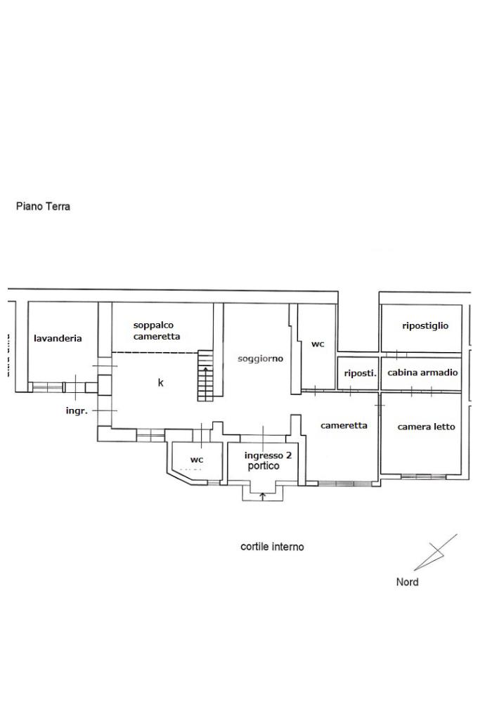 Entrando vi è subito la cucina che dispone di un soppalco usufruibile come cameretta o studio; una lavanderia e un primo bagno con vi troviamo il soggiorno con uscita sul patio zona notte si compone di due camere da letto entrambe con finestra e di cui una con cabina l'immobile un secondo bagno ed un comodo ripostiglio.