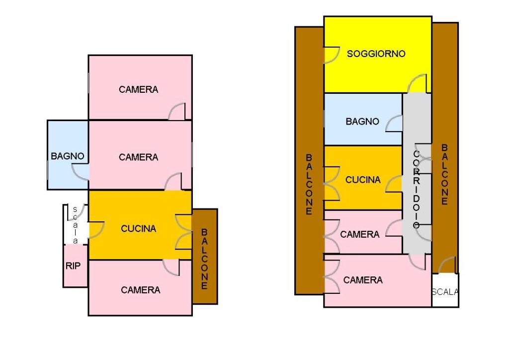Il secondo appartamento si trova al primo piano, offre un'ampia metratura e una doppia esposizione, vi troviamo due comode camere da letto con uscita sulla balconata, una spaziosa cucina abitabile con camino e un salone doppio anch'esso con balcone.