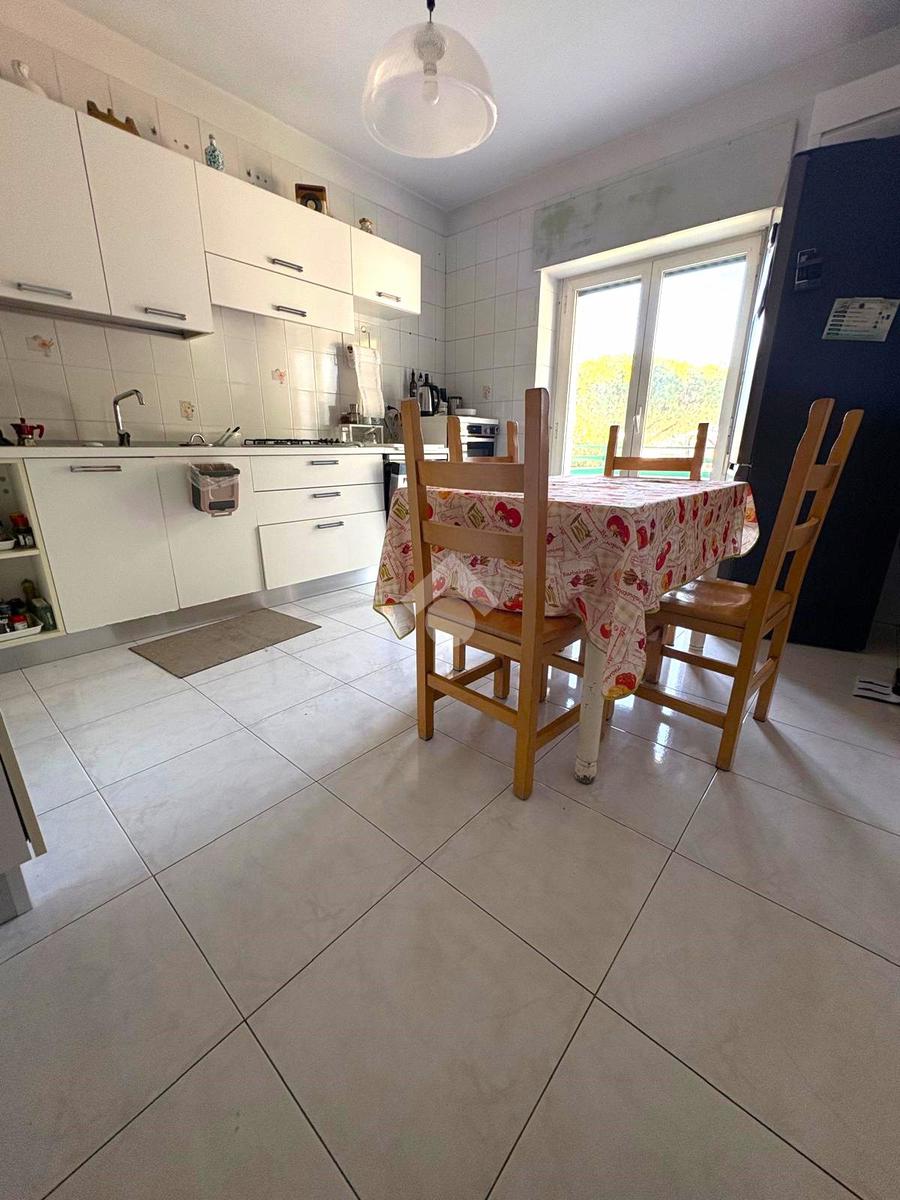 Entrando ci accoglie un ampio salone con doppia uscita sul balcone terrazzato avente affaccio la zona giorno vi troviamo la cucina abitabile anch'essa con uscita sulla la zona giorno un bagno di servizio con box doccia.